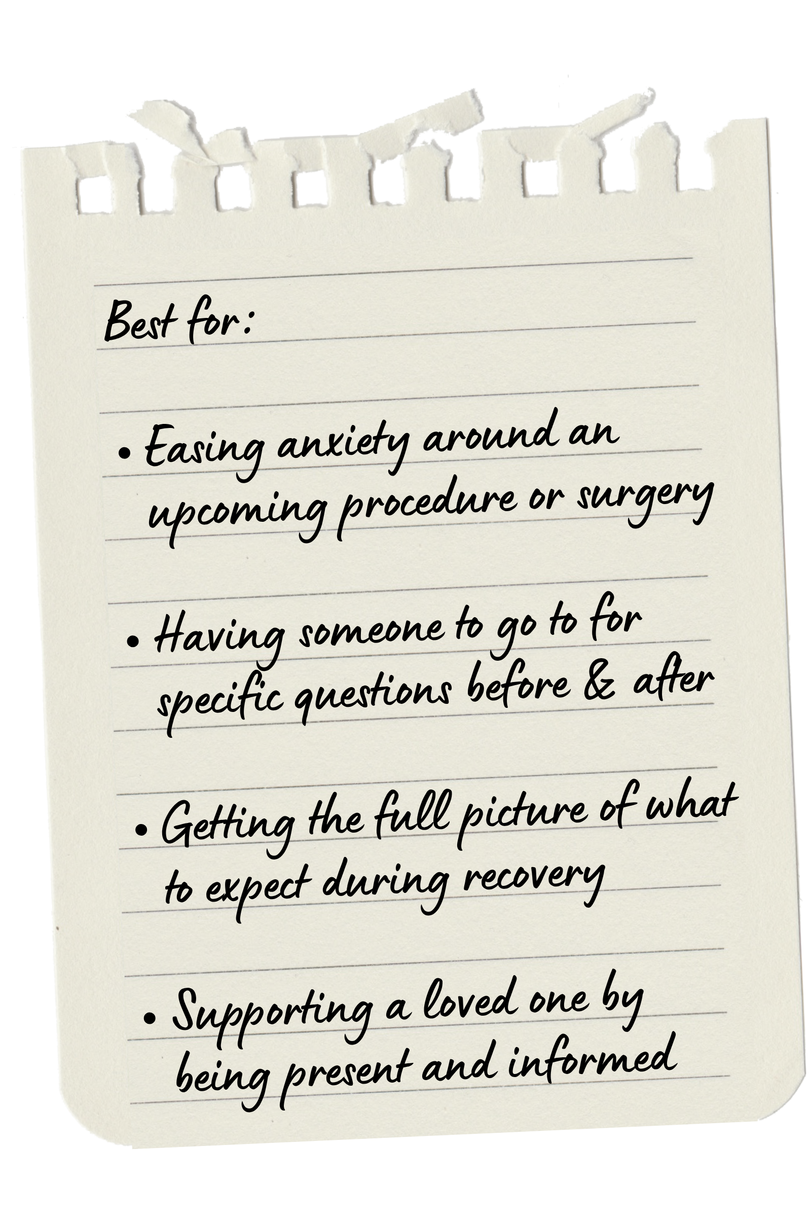Surgery is one of the most stressful experiences a person can go through. There is a period before the procedure when everything feels uncertain and the instructions feel overwhelming. There is the day itself, which often moves faster than anyone expects. And there is the recovery, which can stretch on longer than anticipated and raise questions that discharge paperwork does not answer. As a Navigator, I will walk through all of this with you.